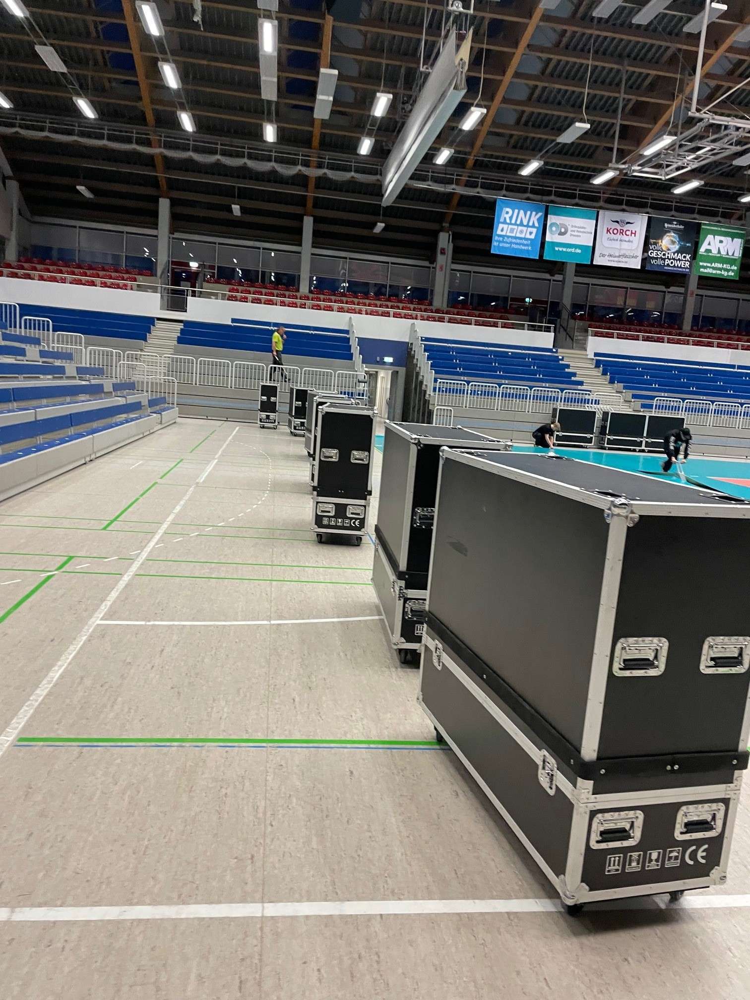 – Auf- und Abbau des Spielbelages und Spielfeldes